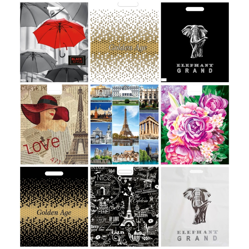 Пакет 50х60 Дама в шляпе, Зонтики 100мкм